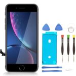 APPLE対応 iPhone SE2の4.7インチ液晶パネルです。黒色で、スクリーン修理用のフロントパネル、タッチパネル、ガラスを含み、取付工具が付属しています。