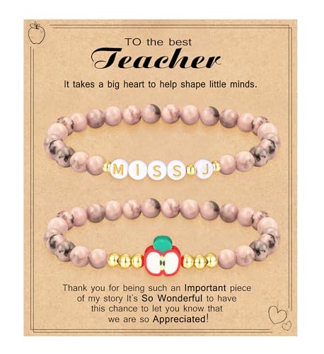 女性への先生への感謝の贈り物、Teacher Must Haves イニシャルブレスレット Mrs Miss End of Year教師ギフト Thank You for Helping Me Grow Music 数学 科学 教師 ブレスレット 退職 2セット ジュエリー, MRS, 金属, 宝石なし。の製品情報
