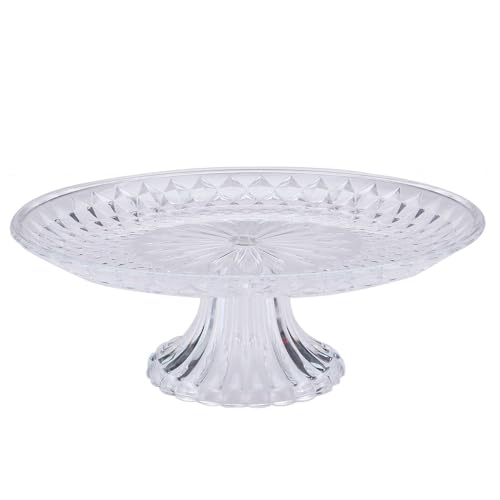 デザイナブルなケーキスタンドは、アクリル樹脂製で日本食品規格検査済み。直径25cmの水晶柄スタンド付きで、ケーキやフルーツ、お菓子のディスプレイに最適です。