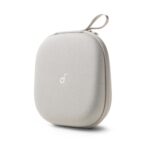 Anker Soundcore公式ヘッドホンケース。防水防塵設計と耐衝撃性を備え、ストレッチメッシュポケット、取り外し可能トレイ、ストラップ付きで使い勝手抜群。カラーはベージュ。