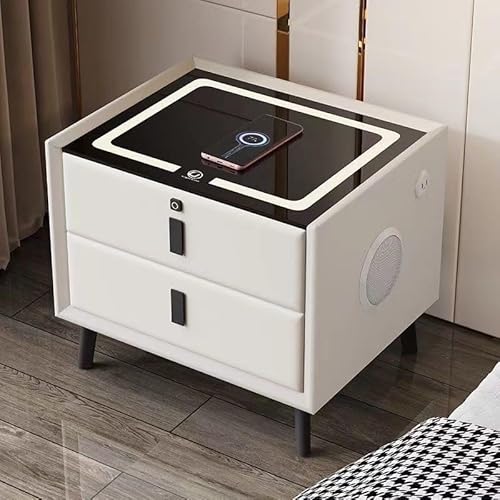 Aleyarナイトテーブルは、3色LED、USBポート、コンセント付きで省スペース設計。引き出し付きで収納力もあり、組立不要の完成品。寝室に最適なタッチランプも搭載しています。