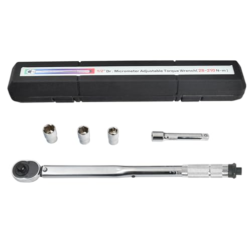 Fkstyleのトルクレンチは28-210N・mのプレセット型で、12.7mm差込角と高精度±4%を誇ります。ロック機能付きで、タイヤ交換に最適なソケットセット(17・19・21mm)とエクステンションバーが付属。専用ケース入りで車やバイクの整備に便利です。