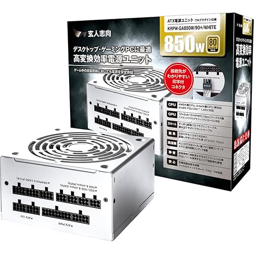 玄人志向の850W ATX電源ユニット。80 PLUSゴールド認証、フルプラグイン設計、セミファンレス機能を搭載。ホワイトカラーで美しさも兼ね備えたPC電源。