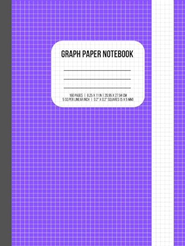 方眼紙ノートは数学、工学、科学用で、サイズは21.0×27.9cm、160ページ。1インチあたり5平方メートル、5×5のライトグレーライン。マットパープルのハードカバーで、標準デザインです。