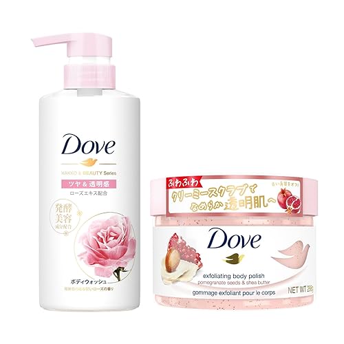 Dove 角質ケアセット ザクロ&シアバターは、ざらつきのある肌をなめらかに整える角質ケア商品です。ザクロのエキスとシアバターが配合されており、保湿とケア効果を兼ね備えています。