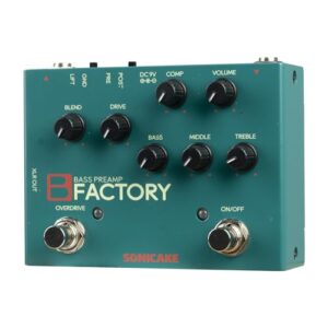 PLAYTECHの5弦エレキベースは、アクティブタイプで2バンドイコライザーを搭載。ハムバッカーピックアップを2基装備し、深みのあるサウンドを実現。カラーはブルーバーストです。