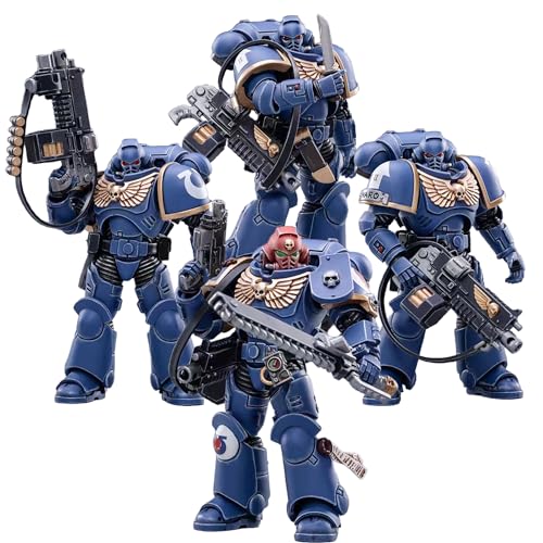 JOYTOY 1/18 アクションフィギュア、ウォーハンマー40,000のウルトラマリンインタープロセッサ4点セット。4.8インチのコレクタブルフィギュア、15歳以上向け。