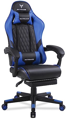 GXTRACE ゲーミングチェア PCゲーミングチェア ゲーム用チェア リクライニング アームレスト ヘッドレスト ランバーサポート オットマン オフィスチェア デスクチェア パソコンチェア 椅子 (Blue) 高価買取中
