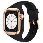 Apple Watch対応の柔らかいシリコン素材のスポーツバンド。41mm・40mmのモデルに対応し、カバー一体型でApple Watch Series 9/8/7/6/SE2/5/SEにも適合。カラーはブラック。