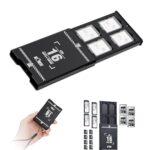 KIWIFOTOSのメモリーカードケースは、薄型で4枚のSDカード、8枚のMicro SDカード、4枚のCFexpress Type Aカードを収納可能。大容量で軽量、持ち運び便利、落下防止ロープ付き。