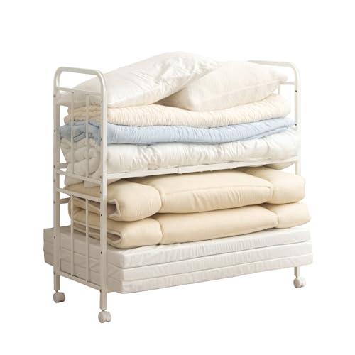 岩附布団収納ラック IW-216WHは、2段構造で奥行46cmのキャスター付き布団ラックです。押入れ収納にも最適で、ホワイトカラーがインテリアに馴染みます。便利な収納アイテムです。