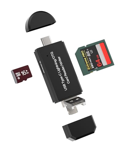 4in1 Micro SDカードリーダーは、USB・Type-C・Lightningポートに対応し、スマートフォンやタブレットと簡単に接続可能。データ転送速度が速く、大容量のストレージを手軽に使えます。