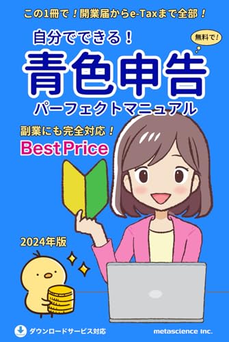 自分でできる!青色申告パーフェクトマニュアル2024年版。開業届からe-Taxまでを網羅した一冊。青色申告をスムーズに行うためのノウハウが満載!
