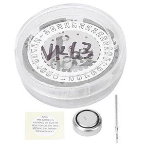 VK63クォーツウォッチムーブメントの交換部品、SR621SWバッテリーを備えた修理アクセサリ、合金材料、頑丈なサービス寿命、ピン、バッテリー、ストレージボックス、インストラクティが含まれています