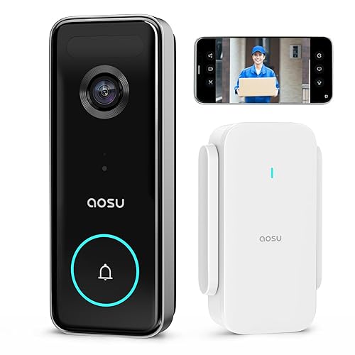 aosu インターホンは500万画素カメラ、8Gストレージ、2.4/5GHz Wi-Fi対応。充電式で工事不要、166°広角、人体検知自動アラーム、HD暗視機能を搭載。アプリで双方向通話、家族共有、クラウド保存、Alexa対応。防塵防水IP66。