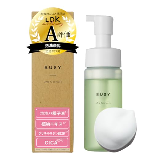 BUSY ビジー ホイップフェイスウォッシュは、150mlの泡洗顔フォームです。時短でスキンケアができるポンプ式の基礎化粧品で、手軽に洗顔が可能です。