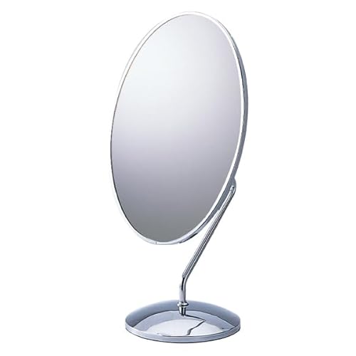 ダエン卓上ミラーは、鏡厚3mmの楕円形デザインで、角度調節が可能です。サイズは幅25×奥行18×高さ47cm。クローム仕上げで、スタイリッシュな卓上鏡。