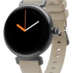 MONOMAM minimoは、小さめの丸型スマートウォッチです。iPhoneとAndroidに対応し、14mm幅のベルトを持ちます。AMOLEDディスプレイで、活動量計や通話、LINEの着信通知を受け取れる機能があります。生活防水仕様で、MOCHA GREIGEカラーのデザインも魅力的です。