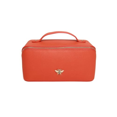 アリスウィーラーのラグジュアリービューティーケース。ロンドンデザインのトレインケースで、オレンジのソフトサイド素材製。女性用のミニサイズ、メイクアップやトイレタリー入れに最適です。