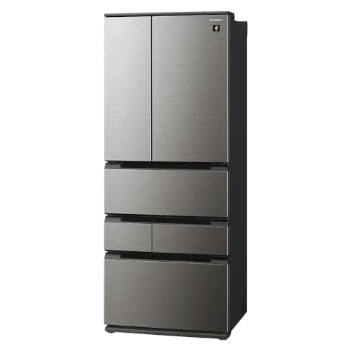シャープの冷蔵庫 SJ-MF55M-H は幅73.0cm、容量545Lでピラーレスフレンチドアデザイン。ラスティックダークメタル仕上げで、薄型のメガフリーザーを搭載し、効率的な収納を実現。