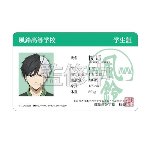 WIND BREAKR 桜遥 学生証風カードは、リアルな学生証デザインで、サイズは一般的な学生証と同じ。軽量で持ち運びやすく、日常使いからコスプレ、イベントに最適です。高品質プリントでデザインも鮮明です。