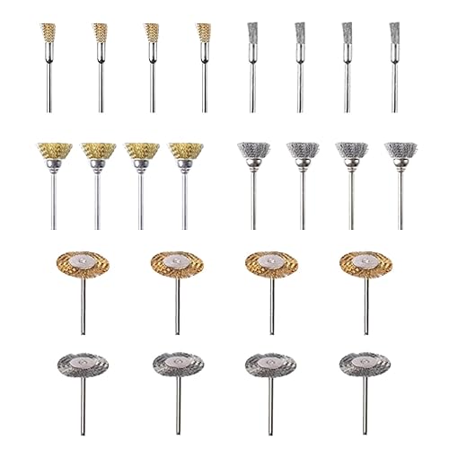 ワイヤーブラシ 24本セット ドリル ブラシ 3mm軸 研磨ブラシ T型 ボウル型 ペン型 鋼ブラシ 真鍮ワイヤーブラシ リューター ブラシ 錆落とし 塗装剥がし 研削 研磨ホイール ミニルーター 電動ドリル ホビールーター用 DIY 作業工具 (A)の高価買取ITEM