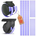 【12個セット】紫のシリコン製キャスターカバー。スーツケースや椅子に適合し、簡単装着で騒音低減、キズ防止、転がり防止。カット可能なデザインで、車輪をしっかり保護します。