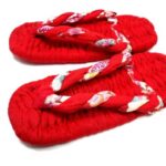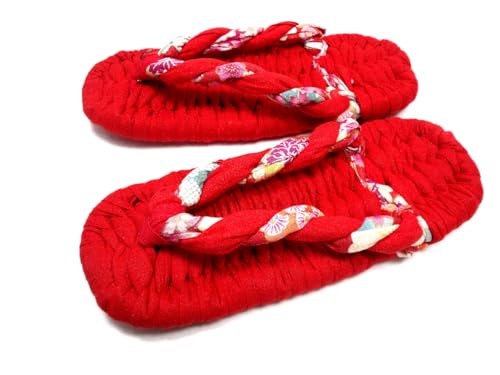 [わらじぐみ] 布ぞうり 赤無地の台に赤と赤和柄のねじり鼻緒 (AKA-9) Sサイズ(22cm)の高価買取