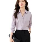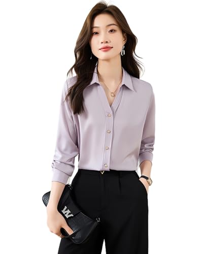 NISSAIのスキッパーブラウスは、ビジネスやオフィスに最適なレディースYシャツです。無地デザインでUVカット機能付き。長袖、Vネック前開きで春夏にぴったり。入学式や卒園式、通勤用におすすめのアイテムです。カラーはパープルでサイズはL。