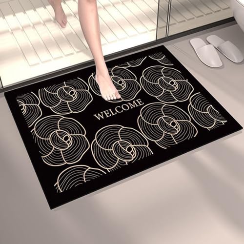 ドアマット ブラック 50x80cmは、優れた吸水性と速乾性を持ち、湿気を効果的に吸収します。シンプルなデザインで、玄関や室内にぴったり。耐久性にも優れています。