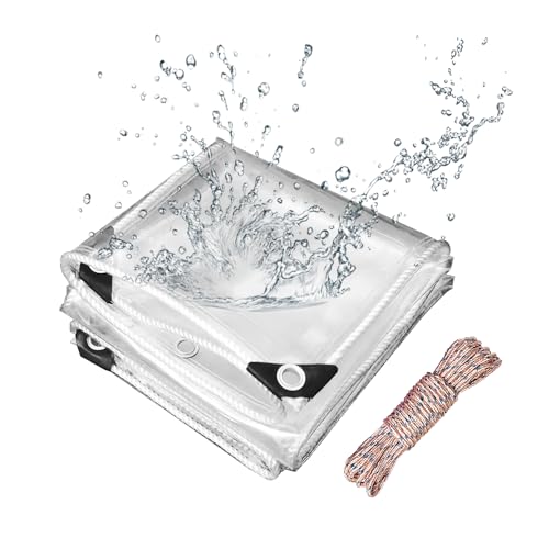 Lsjoaw 防水透明シート 360x180CM、厚さ0.35mm、400g/m2。屋外用の耐久性があり、防風・防雨・防砂・防塵機能付き。植物保護カバー、ビニールシートとしても利用可。