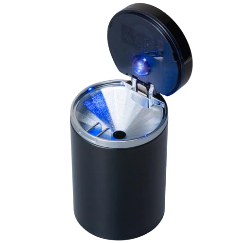 セイワ(SEIWA)の車内用缶灰皿WA152は、自然消火機能やタバコホルダー付き。ポイ入れも可能で、電池式LEDライト内蔵。お試し用CR2032ボタン電池付き。ブラックカラーです。