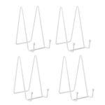 EINEY ポップスタンド 卓上 店舗 オフィス お店 プレートスタンド アイアン 額立て 皿立 色紙 ブックスタンド 写真立て 本立てイーゼル型スタンド ディスプレイスタンド ホワイト 4 個セットの高価買取