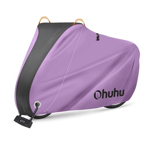 Ohuhu 自転車カバーは、18-24インチ対応の防水・厚手設計で、190Tナイロン製。破れにくく、UVカット、防風機能あり。防犯対策用の鍵穴、収納袋付き。カラーはピンク。