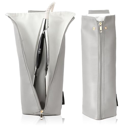 LASIEMヘアアイロンケースは、耐熱性に優れ、最大300℃の熱い状態でも収納可能。持ち運びや旅行に最適で、吊り下げ機能や撥水ナイロン素材を使用。国内の耐熱検査済みで安心です。