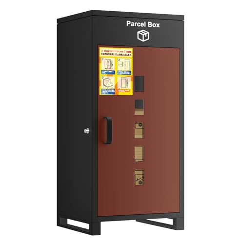 VARNICの大型宅配ボックスは組み立て不要で防水設計。盗難防止機能を備え、両開扉で使いやすい。個人宅向けで置き配に最適。レッドカラーが目を引く。