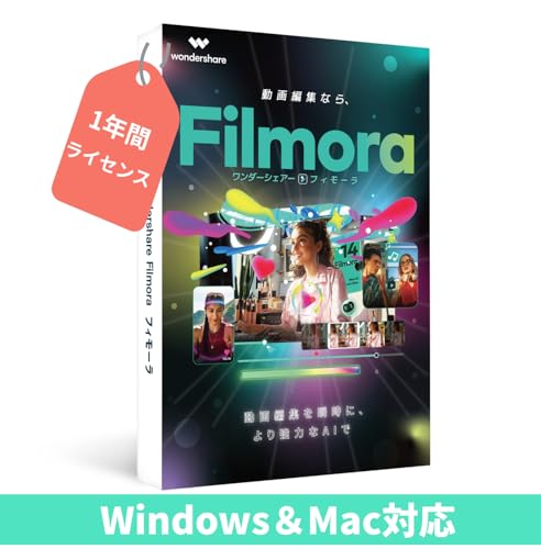Wondershare Filmora 動画編集ソフト 1年間ライセンス|AI機能搭載【毎月1000 AIクレジット付与】|DVDパッケージ版|Windows、Mac、Andoroid、IOS、ipad対応の製品情報