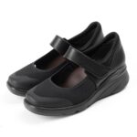 アシックス商事のレディワーカーシリーズのパンプス。ベルトタイプで約4.5cmヒール、メッシュ素材で通気性抜群。3E相当のゆったりしたデザインで、仕事やオフィスカジュアル、お出かけに最適。ブラックカラー、サイズ23.0 cm。
