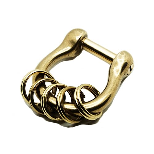 真鍮製のネジカンキーホルダー。5個のリング、シャックル、ダブルリング付き。ベルトループやキーフックとしても使用可能。ハンドメイドで、メンズに最適なアイテムです。