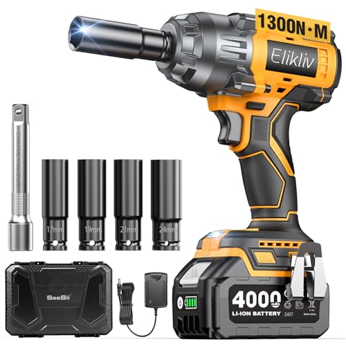 Elikliv 電動インパクトレンチ 1300N.mは、高トルクでナットやボルトの締め付けに最適。耐久性に優れた設計で、使いやすいデザイン。業務用からDIYまで幅広く対応。
