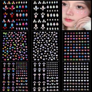 SensaBliss ラインストーン シール キラキラ 3D フェイスステッカー ラインストーンステッカー 接着剤不要 直接貼り付け可能 星 月 涙メイク フェイスストーン 顔面デコ デコパーツ ネイルデコパーツ 携帯電話装飾 DIY用品 手芸用品(8枚セット)
