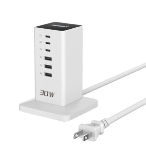 USB コンセント 6ポート 合計30W USB type-c充電器 タワー式 充電ステーション TESSAN スマホ充電器 充電アダプター iPhone Galaxy Android など機器対応