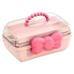 女の子のヘアクリップやヘアゴムを収納するための三層オーガナイザーです。ハンドル付きで持ち運びが便利。裁縫用品やメイク、ネイル、画材など多目的に活用できます。ピンクのかわいいデザイン。
