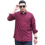 ワインレッドの長袖ワイシャツ、カッターシャツ。大きいサイズ対応 (3L-8L)。ビジネスシーンに最適な無地デザイン。ボタンダウンスタイルで使いやすく、メンズ向けのファッションアイテムです。