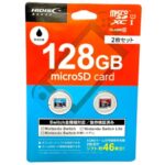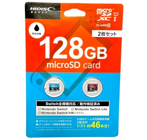 スイッチ全機種対応のHIDISCマイクロSDカード128GB x 2枚セット。防水使用で、大容量により5GBのゲームが46本ダウンロード可能。安心してゲームライフを楽しめます。