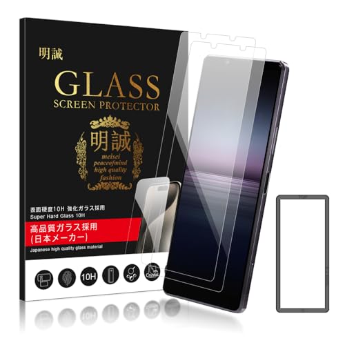 明誠 Xperia 1 II用の強化ガラスフィルム2枚セット。ガイド枠付きで取付け簡単。10H硬度、0.3mmの極薄設計、気泡ゼロ、指紋防止、飛散防止機能付き。対応機種はSO-51A、SOG01。