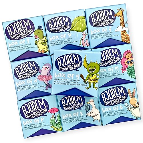 Bjorem Speech® サウンドボックスセットは、P、B、M、T、D、N、K、G、F、Vのサウンド用のスピーチセラピーカードです。アーティキュレーションと言語開発をサポートするツールです。