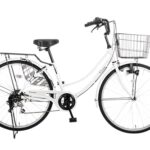 Carinoの26インチシティサイクルは、シマノ6段変速、LEDライト、大型カゴを装備したママチャリです。アルミリムで軽快に通勤通学からお出掛けまで対応。人気のWループ型デザインで、CR-W266Aホワイトモデル。