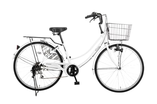 Carino 自転車 シティサイクル ママチャリ CR-W266Dは、シマノ6段変速搭載で快適な走行を実現。カゴ付きでお買い物も便利。Wループ型軽快車デザインとホワイトカラーでスタイリッシュ。リアキャリア付きで荷物も楽々運搬。