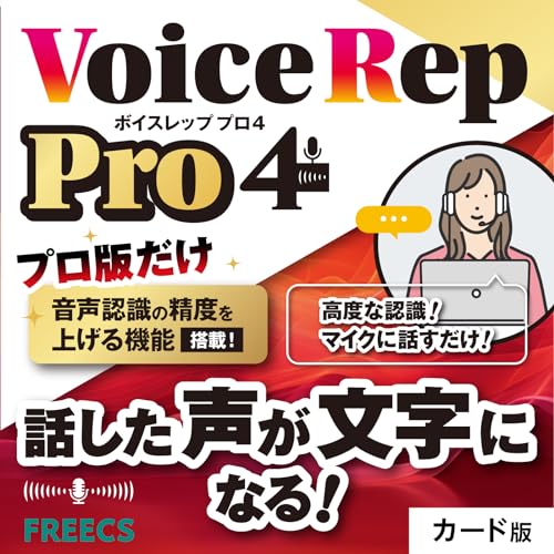 Voice Rep Pro 4は、高精度な音声認識を実現する音声入力ソフトウェアです。リアルタイムでの文字起こしや音声コマンド機能に対応し、効率的な作業をサポートします。多言語にも対応し、幅広い用途に利用可能です。